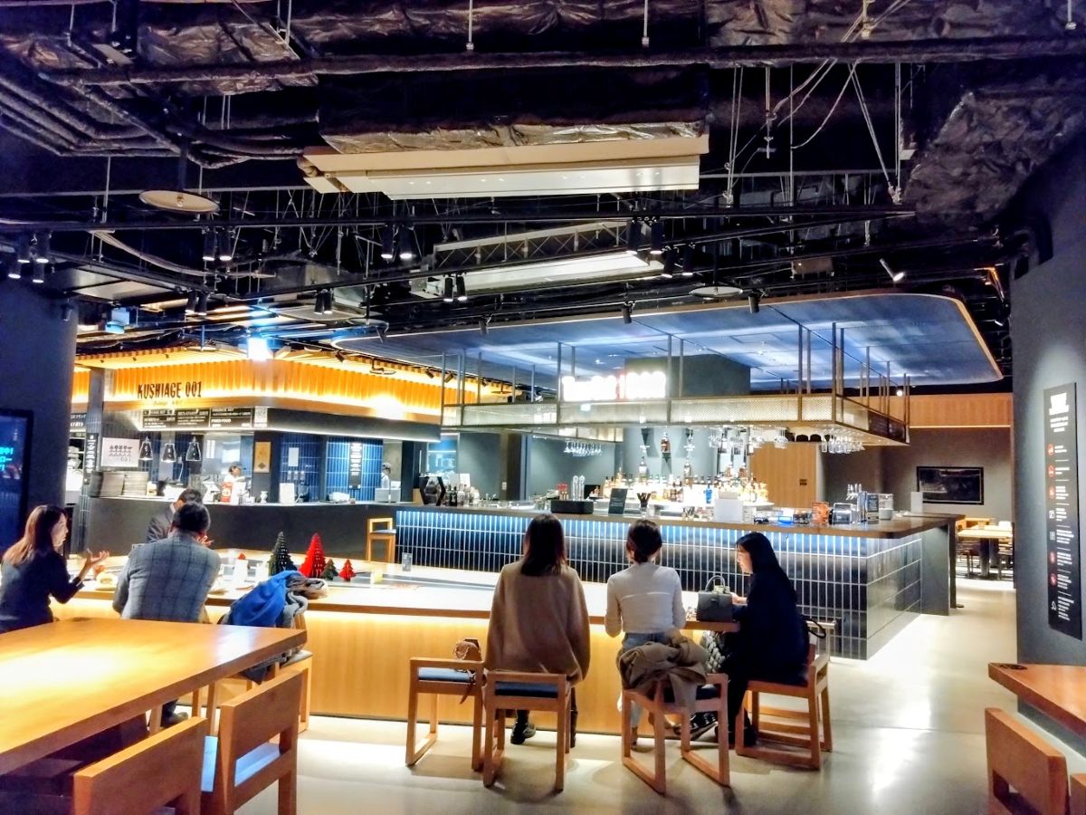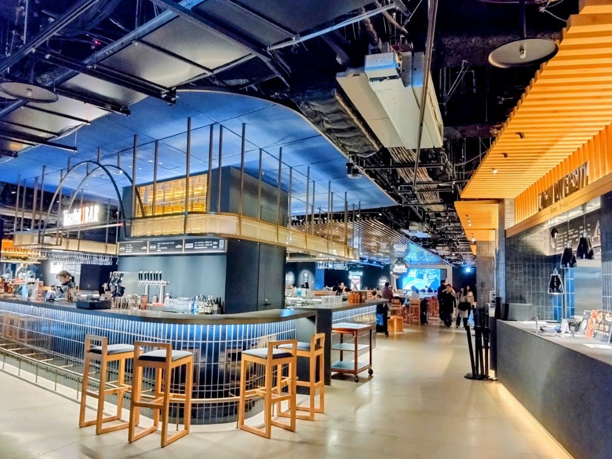 特徴的だったのは、やっぱりここも地下街が面白いことだ笑。タイムアウトマーケット大阪という巨大なフードホールが誕生していた(ざっと1000坪800席らしい)。ミシュラン星付きのやきとりとか関西を代表するようなレストランが集積していた。アート空間を思わせるデザインセンスが、ちょっと凄い。