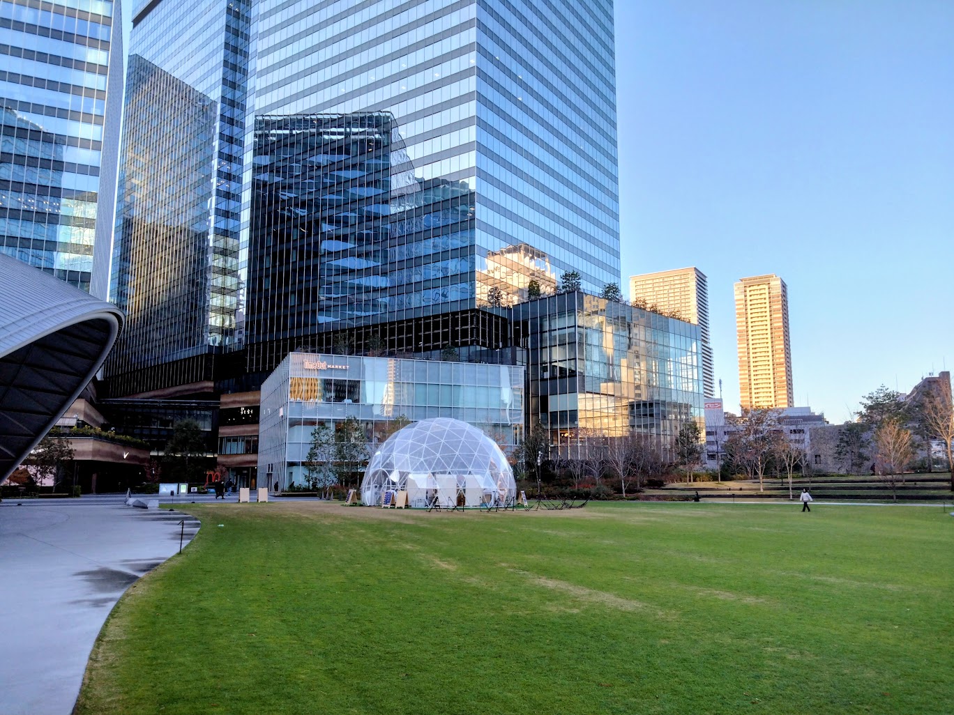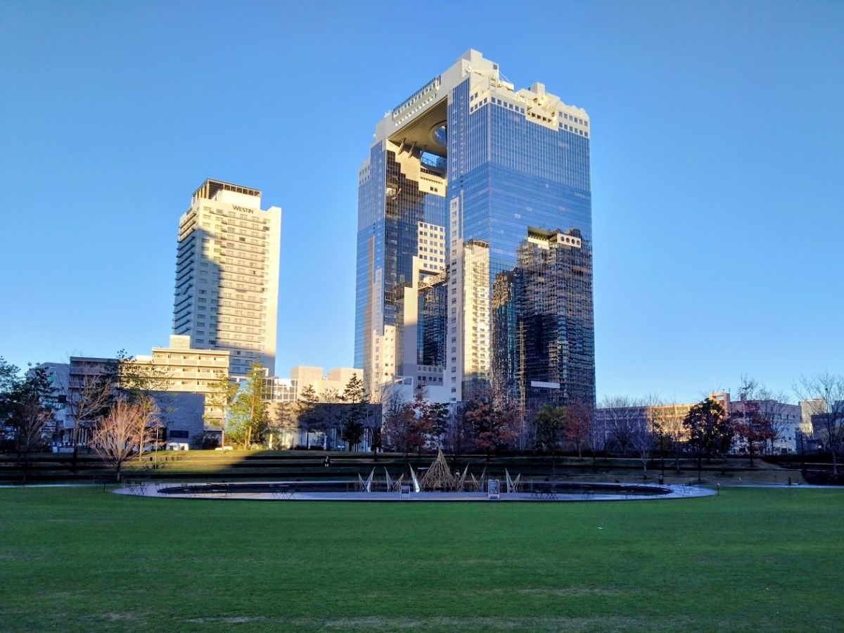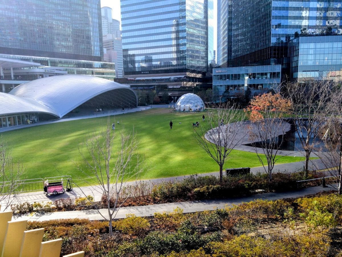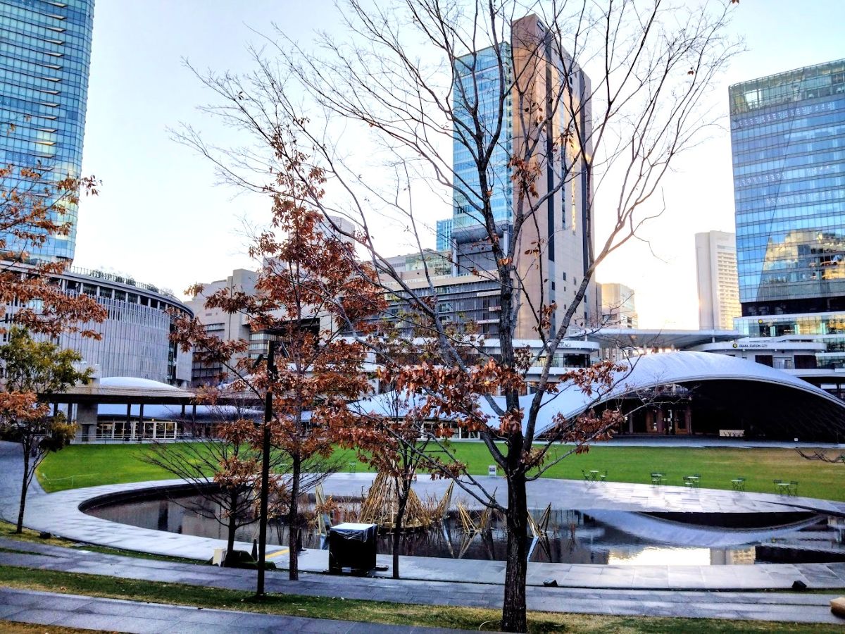 朝のうめきた公園は、とても美しい。中央の池や芝生も、回廊のような散策路も楽しいのだが、なにより公園越しのビル群がやけにきれいに見えるのだ。なるほどここは高層ビルに囲まれた都市公園なんだね。壮観なビルの外観にちょっとアートを感じたりする。