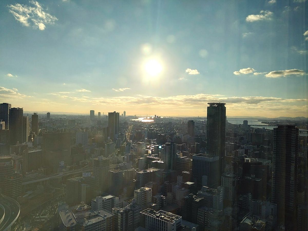 客室は34階だから、ブラインドを開けると早朝の大阪がば~っと広がる(当たり前だけど)。見下ろす角度のせいなのか、見えるのはビル群ばかりで、大阪には緑がないように見えてしまう。まぁそんなはずもないよね。