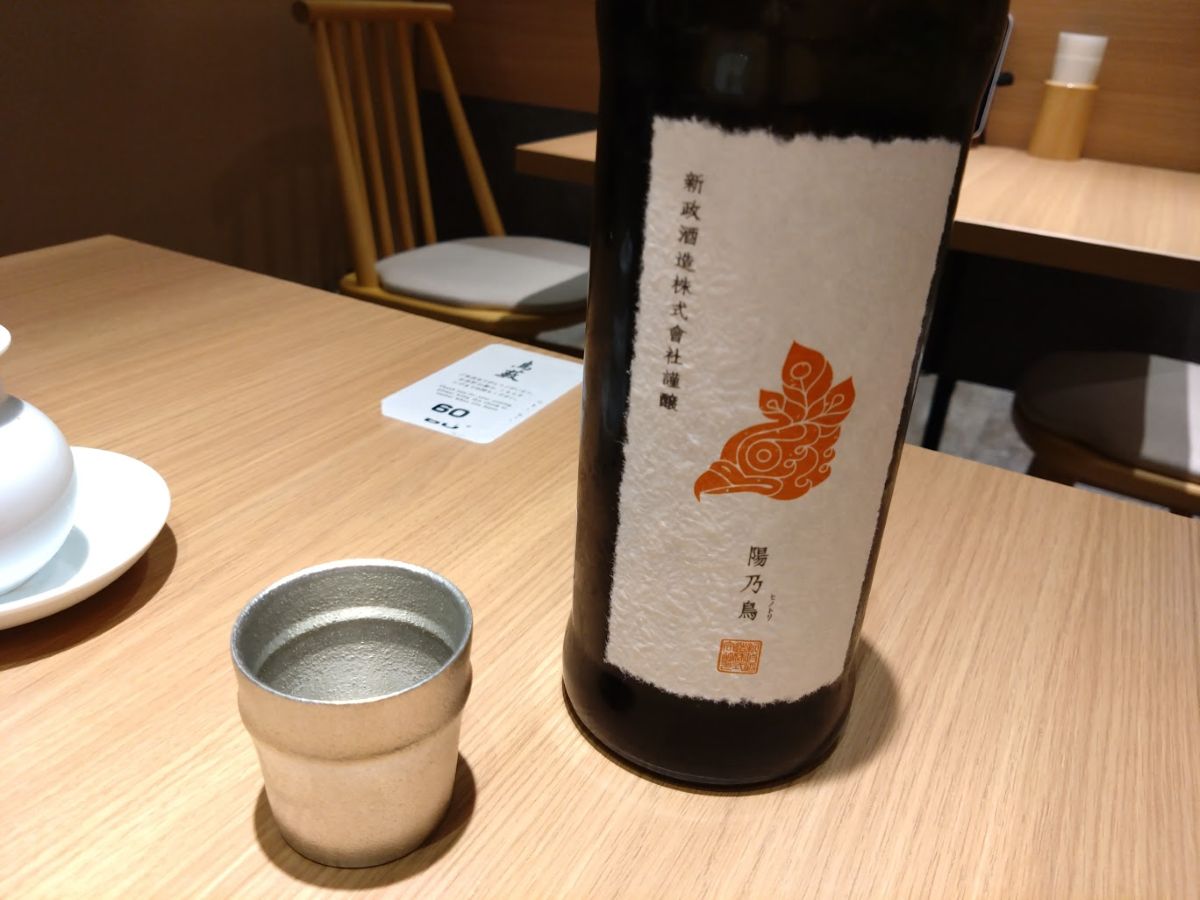 迷ったあげく、秋田の新政(あらまさ)2種類を飲み比べることにした。マニア垂涎の日本酒で、こんなに豊富な選択肢は見たことがない。代表的なNO.6シリーズからX-typeを選び、プライベートラボシリーズから陽乃鳥(ひのとり)を選んだ。