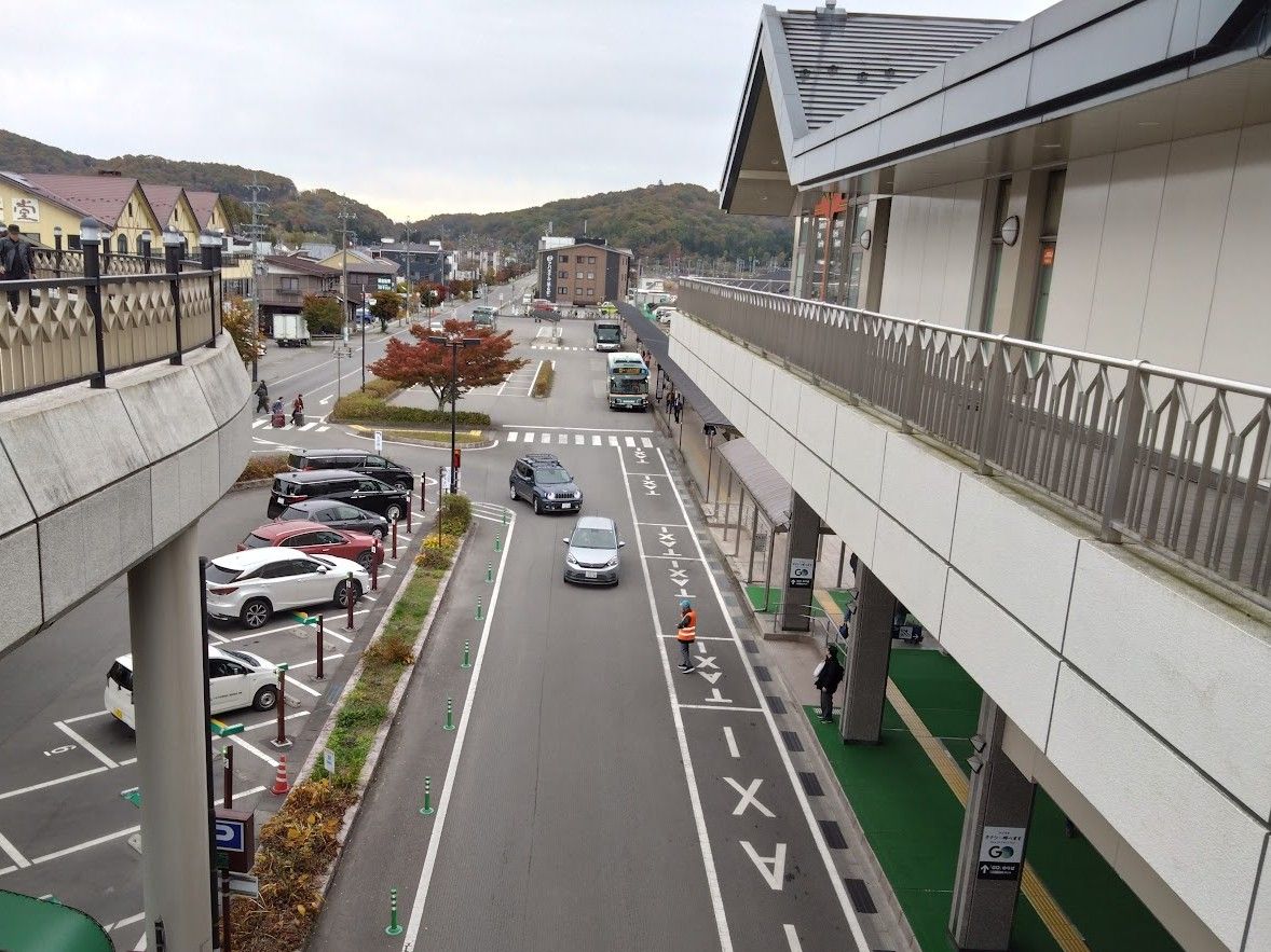 軽井沢駅は新幹線のための小さな駅なので、駅舎には何もありませんでした(小さな物販施設があるだけ)。正面玄関にあたる北口はバスやタクシー乗り場があるだけで、とても静かでした。ちなみに反対側の南口には大型アウトレットがあるので、そっちはにぎやかです。