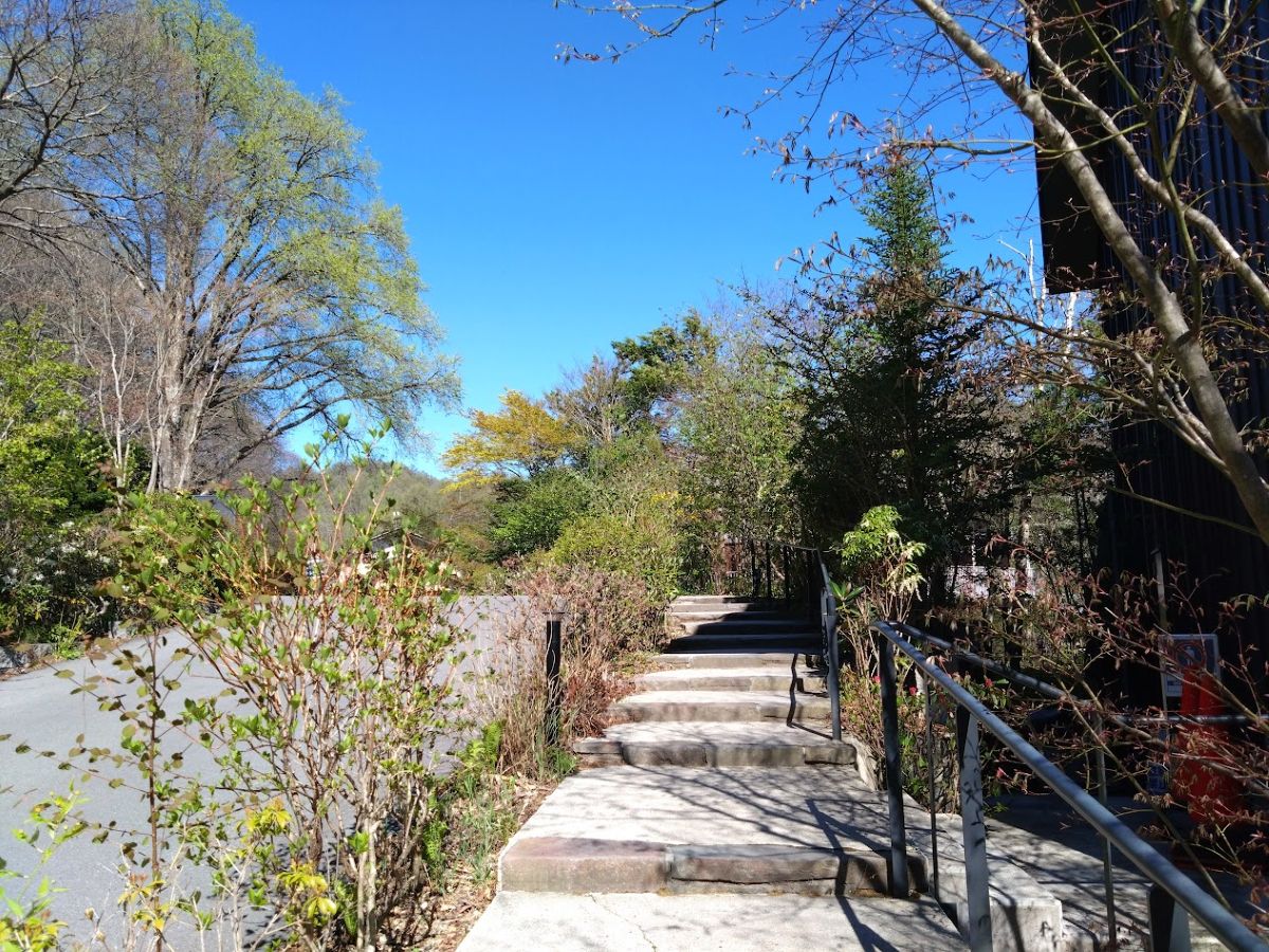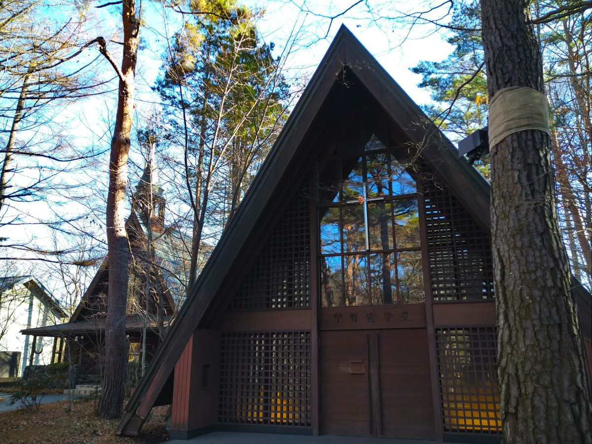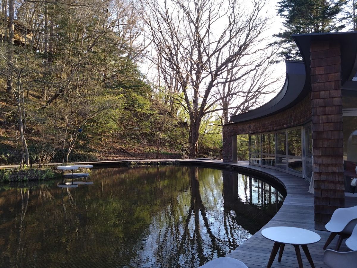 このホテルがあるのは、中軽井沢の森の中、とても自然豊かなエリアだ。ホテルの裏山には高原教会や石の教会などがあって、ちょっとした散歩コースにもなっている。徒歩圏内には気軽に使える温泉(トンボの湯)もあるし、その奥にはネイチャーツアーが楽しいピッキオ(野鳥の森)もある。