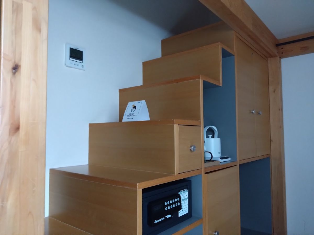 仲間たちは概ねツインを選んだようだが、幹事チームの2人は、あえて「やぐらルーム」を選択した。唯一の難点は、慣れない構造なので「頭をぶつける」ことだ笑。ちなみに相方の某は、寝る前に2度ぶつけて、結局、下のソファで寝たらしい。