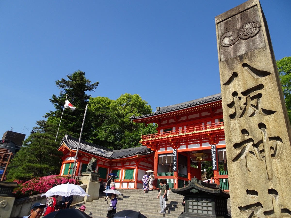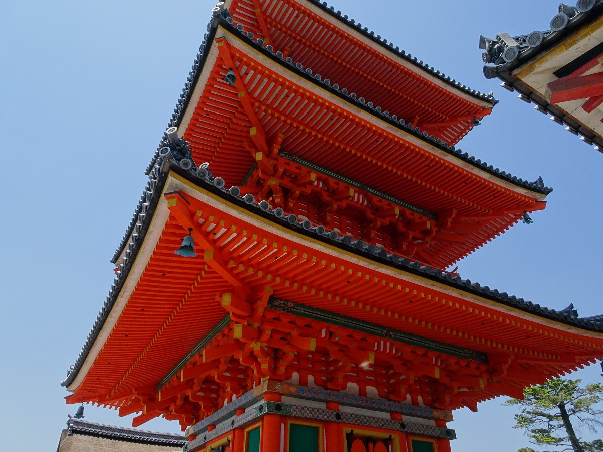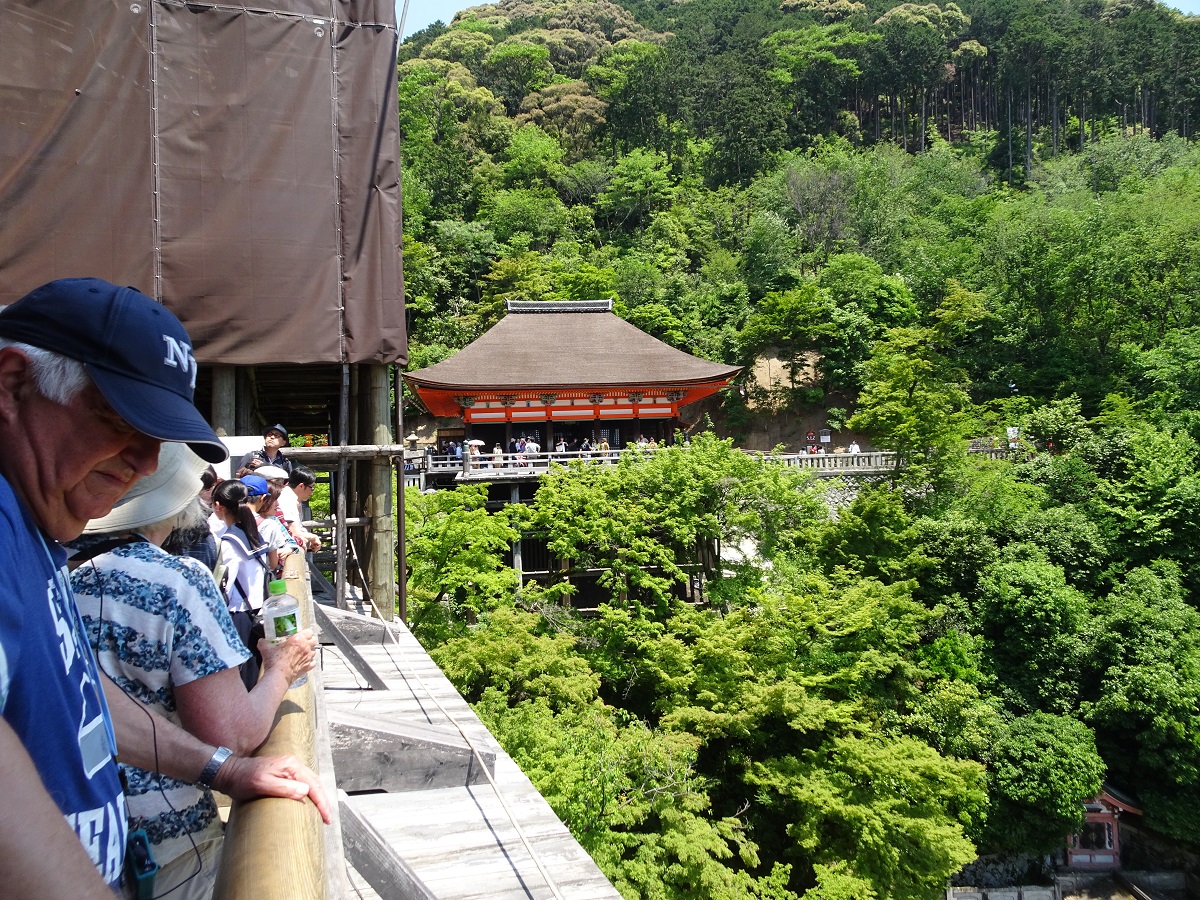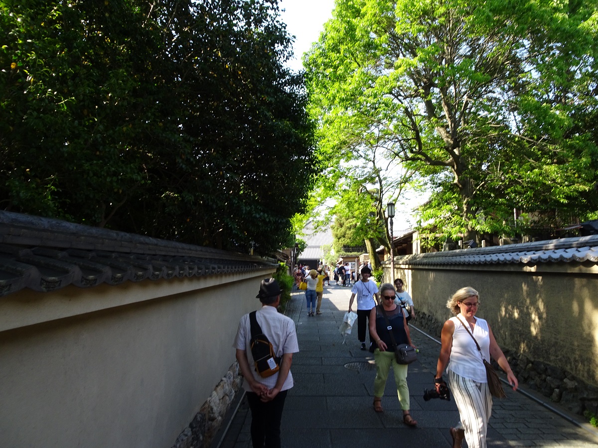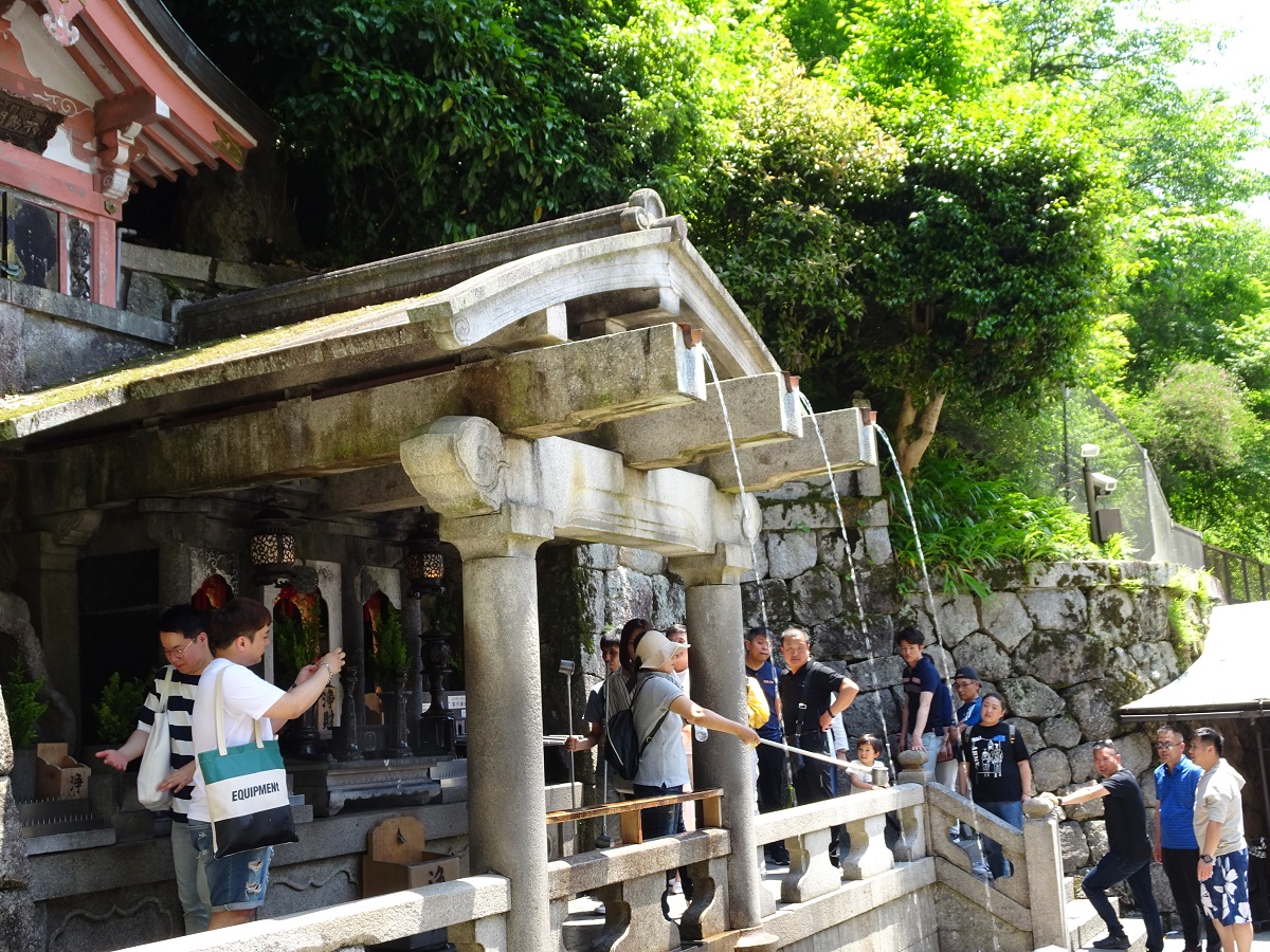 集合場所は清水寺正面の仁王門だった。雲ひとつない京都の空に、朱色の仁王門がきりりと立ち上がっているように見えた。何回も観た景色だと思うのだが、威風堂々で、今日はやたらとカッコいい。幹事は目立つ場所に立って、目印にならないと、後から来た人には、わからないかなぁ、とは思うのだが、なんせ暑くて、じっとしていられない。思ったより湿度はなくカラリとしているのだが、それでもやはり暑い。今日は予定変更して、とにかく無理せずゆっくり歩いて欲しいな。5月の清水寺は修学旅行のピークらしい。横の階段部分では、どこかの中学校くらいの生徒さんたちが整列写真を撮っている。僕たちにもあんなカワイイ時期があったんだよなぁ。