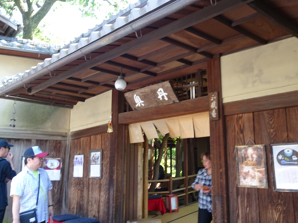 合流場所の都路里・高台寺店にはみんなの笑顔があった。テイクアウトの抹茶ソフトクリームじゃなく、座って食べたいらしい(笑)、みんな列に並んで、かき氷とか名物の抹茶パフェを狙っているみたいだ。たしかにこんな日は、氷を一気食いしたいよな。