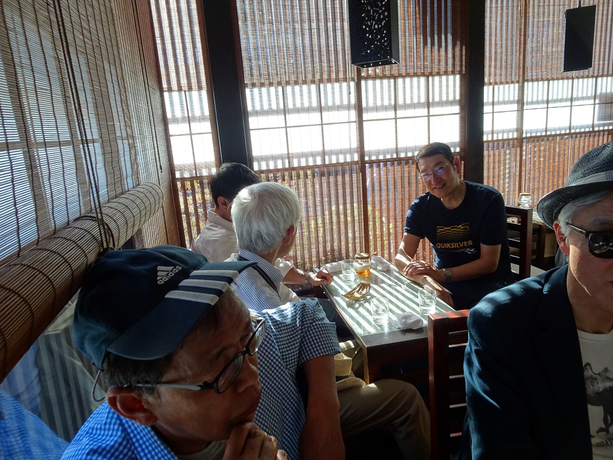 おなじころ、女性たちは近くの「ZENcafe」という、おしゃれなカフェで休憩していたようだ。葛切りで有名な鍵膳義房のプロデュースらしいが、きっとここでも、延々とおしゃべりしていたに違いない(笑)。さあ、そろそろ花見小路を少しだけ散策して、夜の親睦会へ向かおうか。ここから、さらに8人が合流する。いよいよ全員そろって京都の夜の同窓会だ。