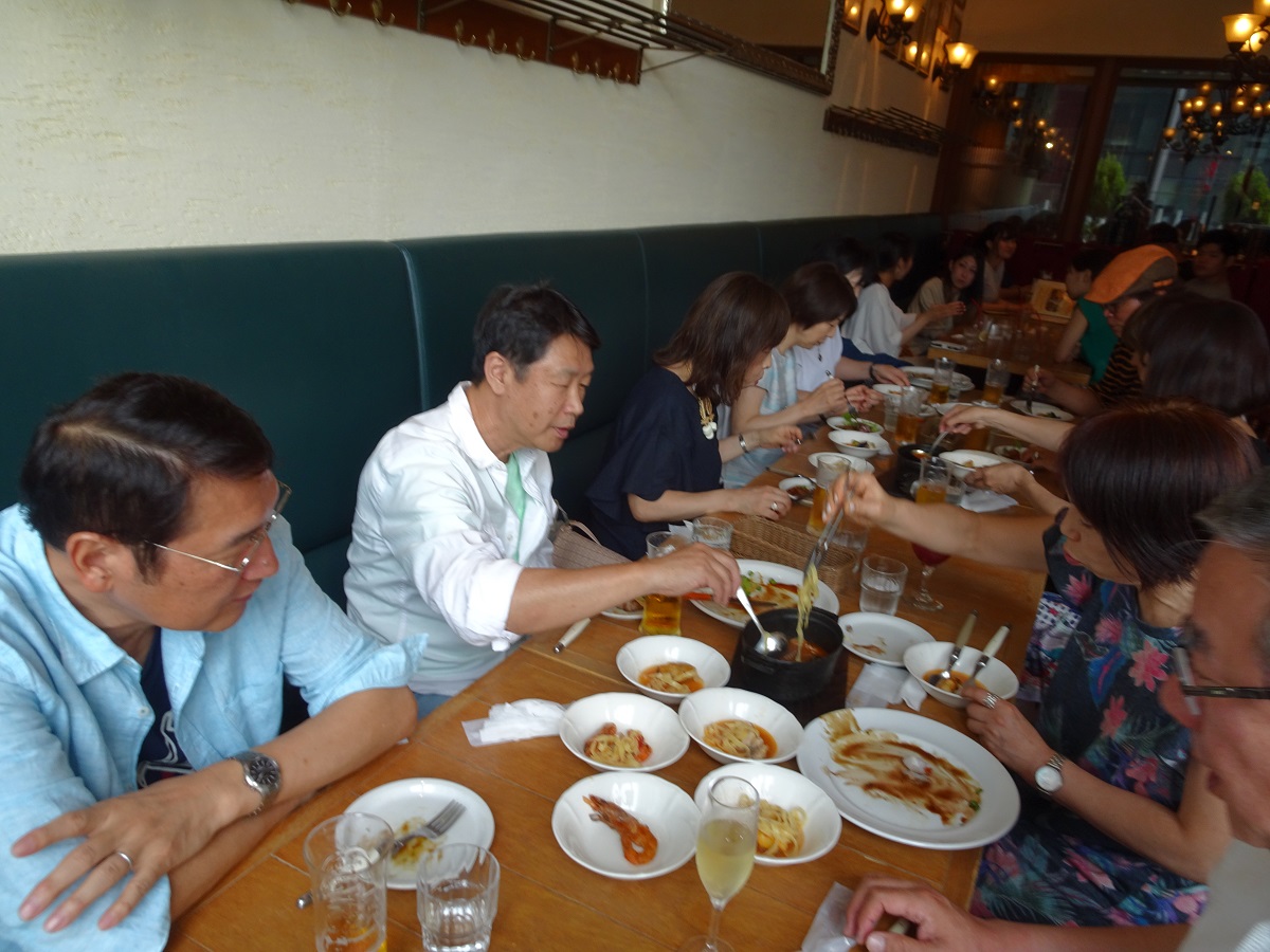 向こうのテーブルの、関西おわらい倶楽部?はここでも元気だった。昨夜、祇園の会場で決定した関西27期の集いが楽しみだし、今年も27期のB面企画は引き続き、あれこれ満載の予定だ。またみんなと、おなかを抱えて笑う日のことを約束して解散となった。