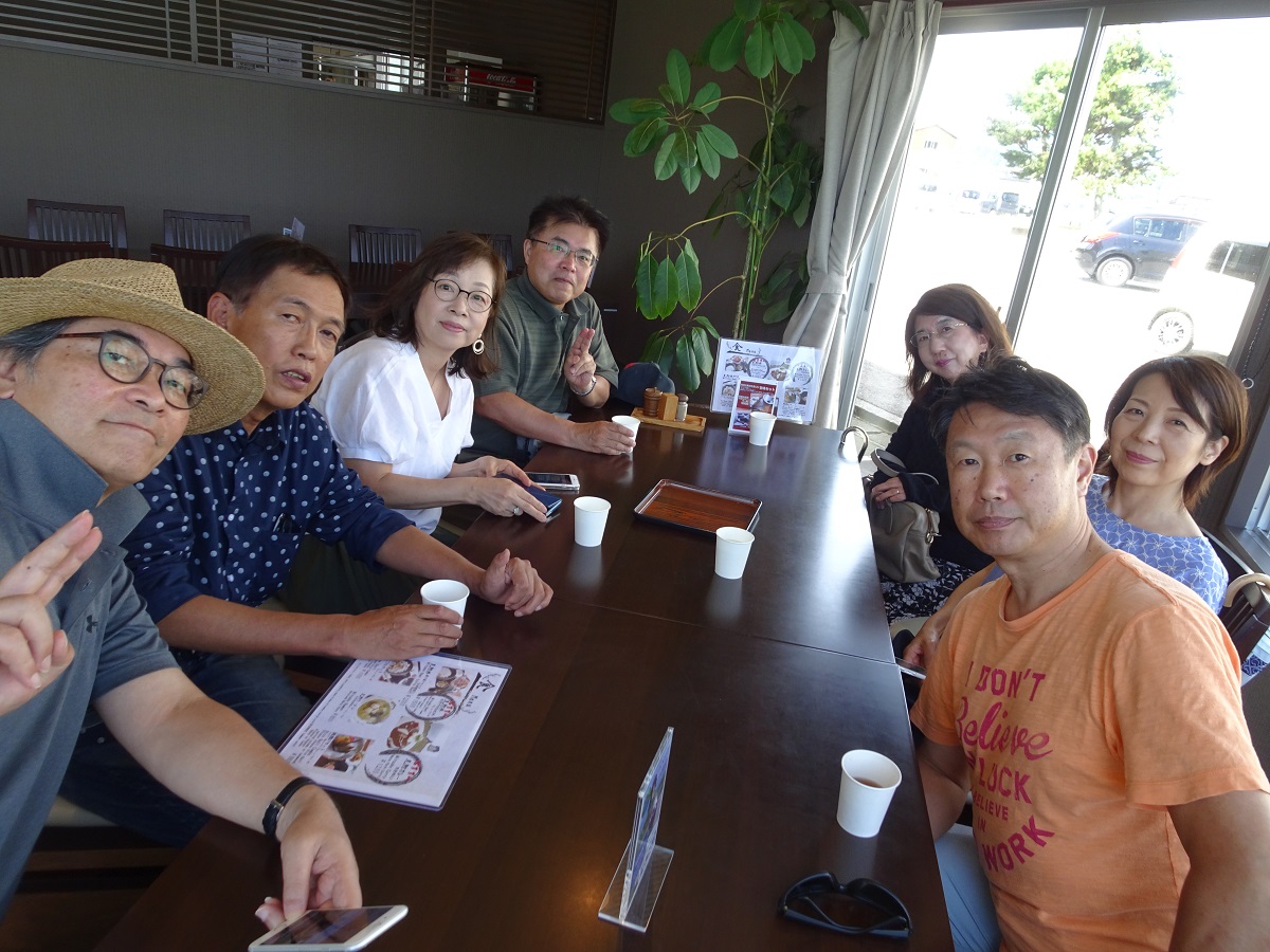 恒例のGさんクジで座席を決め、トイレ休憩をはさんで、のと里山海道を一気に北上し「見附島」を目指します。あえて古いCDを何枚か選んで、Queenのアルバムでのスタートです。仲間は久しぶりの再会に会話の花が咲き、Queenどころではありません。知っている27期の仲間の情報を交換したり、M野くんが雨の奥入瀬のバスの話(女子の着替えの話W)を持ち出したりと、ワイガヤのドライブを続けました。