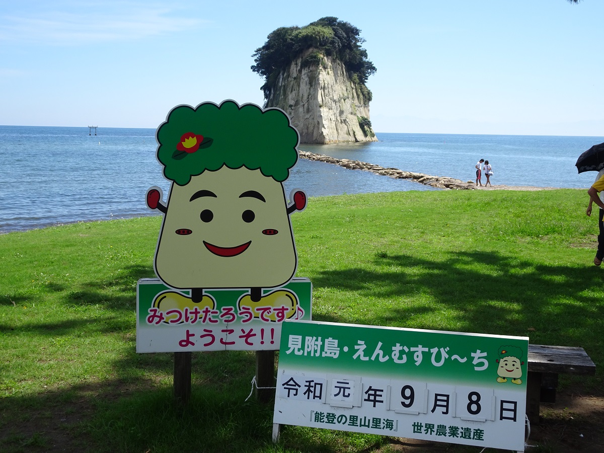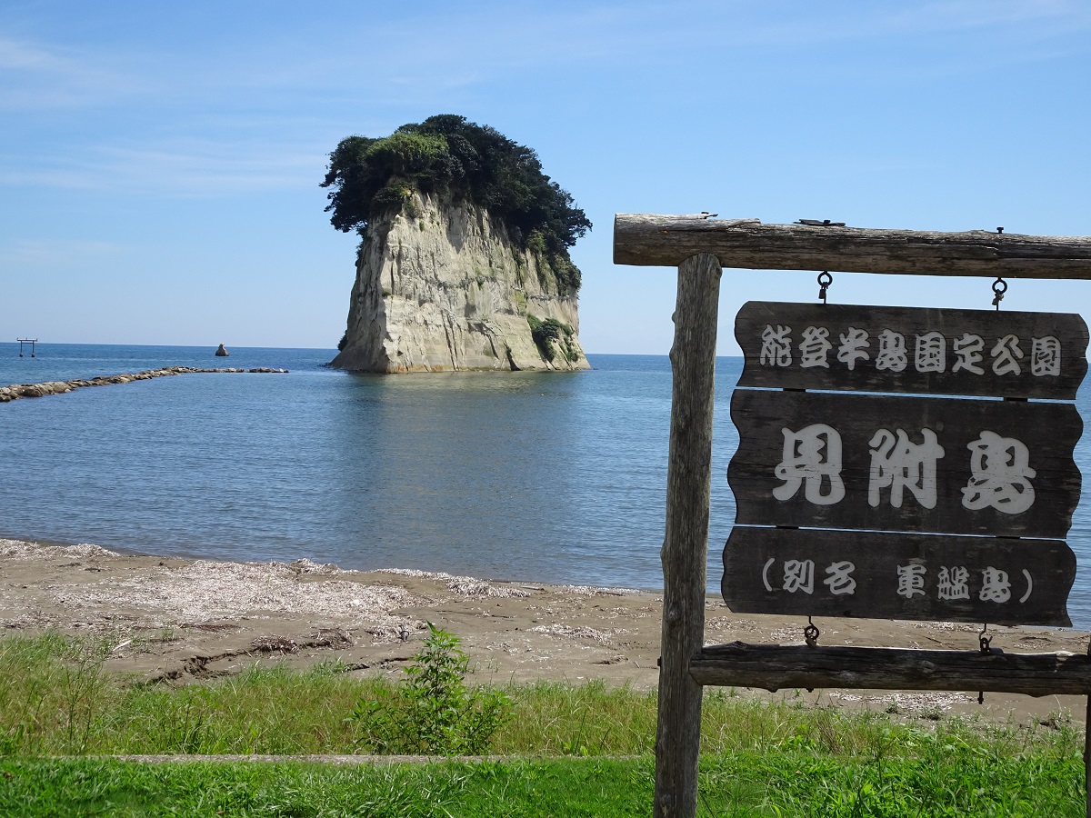 ちょうどアルバムの最後の曲、ショーマスト・ゴーオンを聴き終えるころに、見附島に到着しました。曲のタイトル通り、今日はどんなハプニングが起こっても、楽しい旅を続ける一日にしないとね。