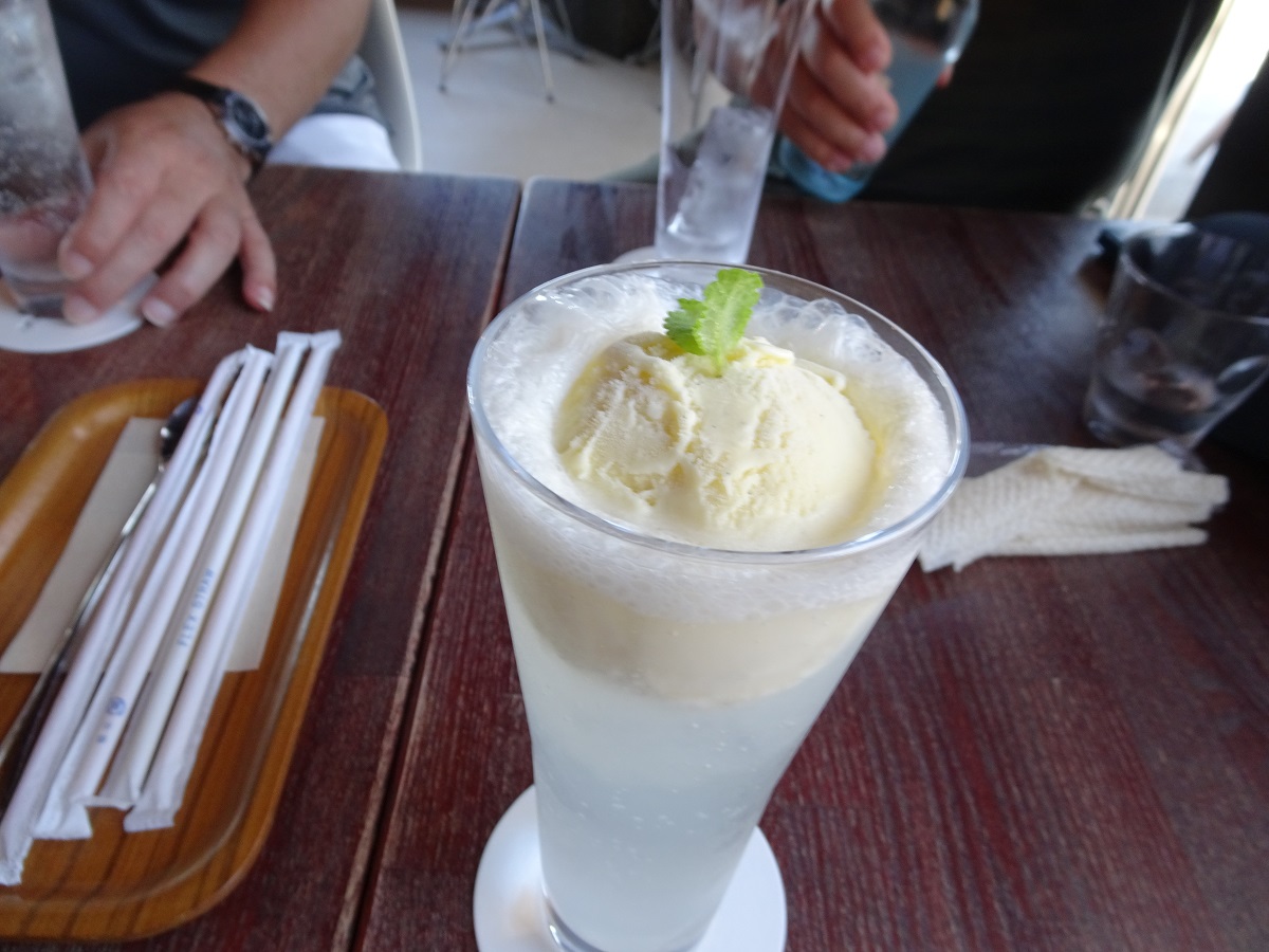 1階がカフェ、2階はギャラリー、外のテラスでつながったオフィス棟?があったり、第一印象とは違って、けっこうカッコいい建物です。メニューの方も「塩」ばかり。いろんな種類の塩サイダーとか、塩サイダーを使ったパンケーキも有名なようです。なぜか、M輪ちゃんが注文したコーヒーにも「塩」が付いていて、それを舐めながらコーヒーを飲む、という念の入れようでした。
