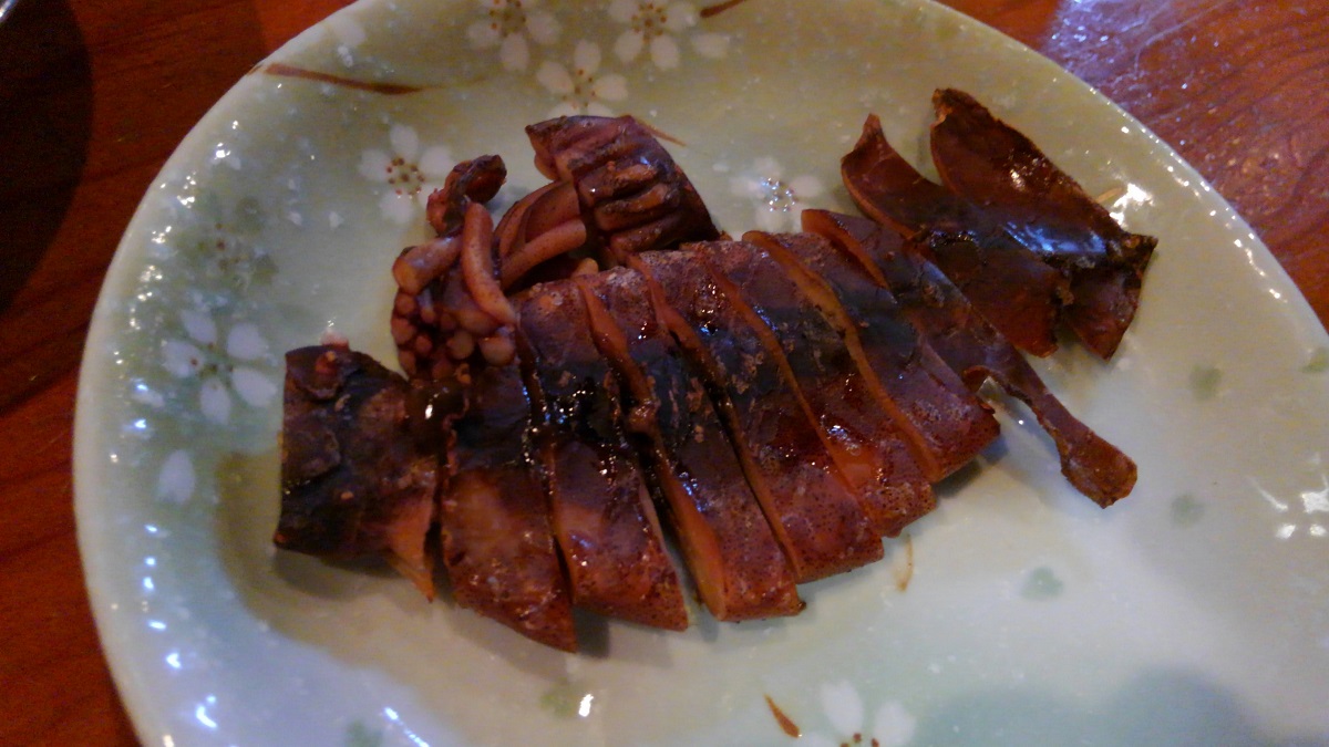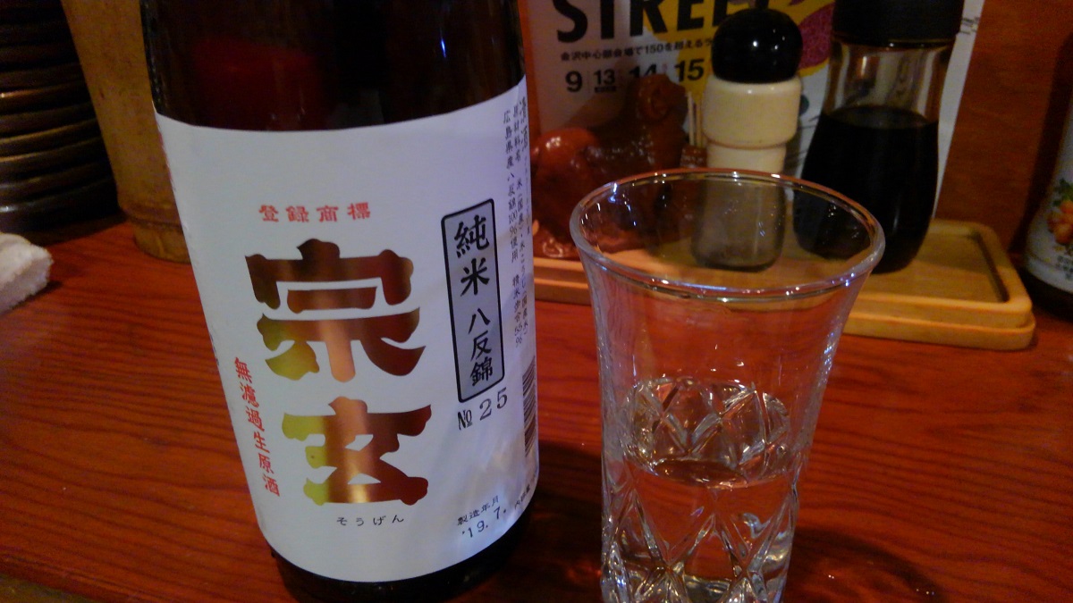 さて、疲労マックスなのに、欲張って2次会まで参加したのは、結局、男ばかりの4人でした。乾杯の生ビールを一気にあおり、買ってきた能登つまみを炙ってもらって、宗玄をぐい飲みです。焼きたてのふぐの一夜干しは最高で、宗玄はすぐに空になり、どうせならと、白ワインも開けることにしました。丸干しいかはワインに合うんだと、無理やり言い聞かせながら、これもすぐに空っぽになりました。