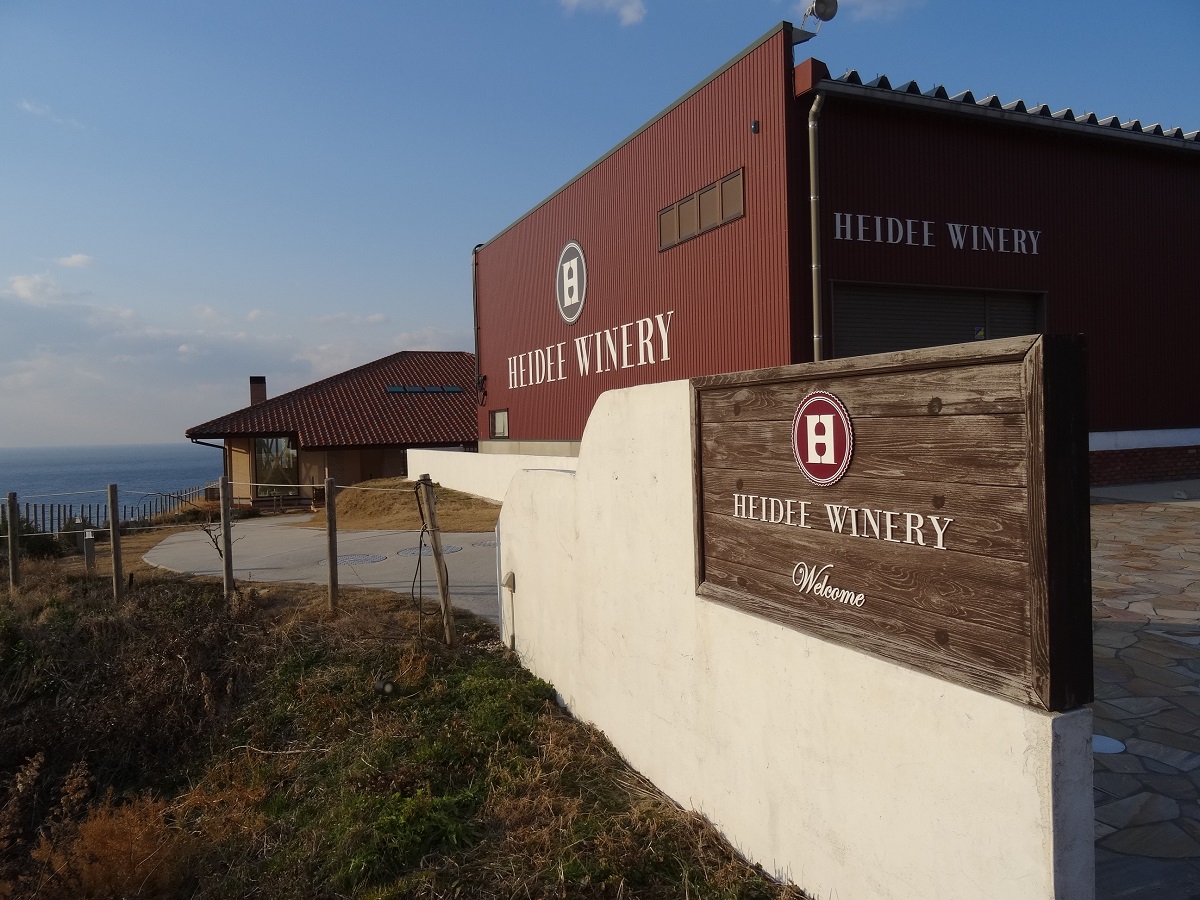 この日の最後の目的地は、ハイディーワイナリー。門前町の海岸に面した山の斜面にある、本格的なワイナリー(ワインの製造と販売)です。まだ歴史は浅くて、観光マップににも登場しない?、そんな隠れスポットです。この数日間が、ぶどうの収穫時期だったらしく、製造倉庫の前では、つなぎを着た若い女性スタッフが、フォークリストを操り、搬入作業をしている最中でした。そういえばコンクリ駐車場には、粉砕したぶどうの破片がたくさん飛び散っていました。