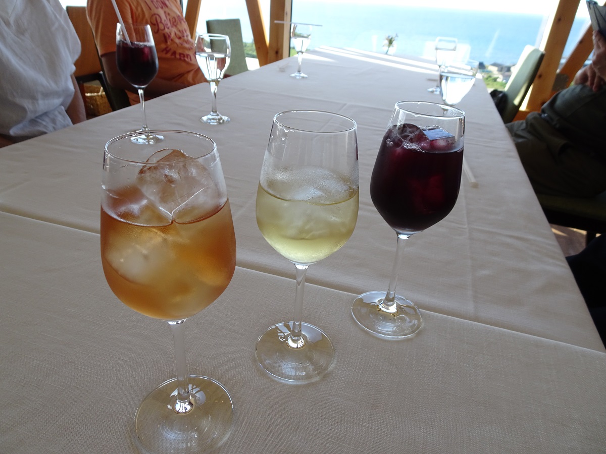 カフェのおすすめは、ワイン品種のぶどうで作った赤白ロゼ3種類のぶどうジュースなのですが、ほぼ全員が、これを注文していました。もちろんノンアルです(笑)。店の一角には、ここのワインが展示販売されていて、ここでも試飲を我慢しながら、お気に入りのワインを探すことにしました。若いワイナリーの、あの若いスタッフたちが作った、若くてフレッシュなワインばかりでした。