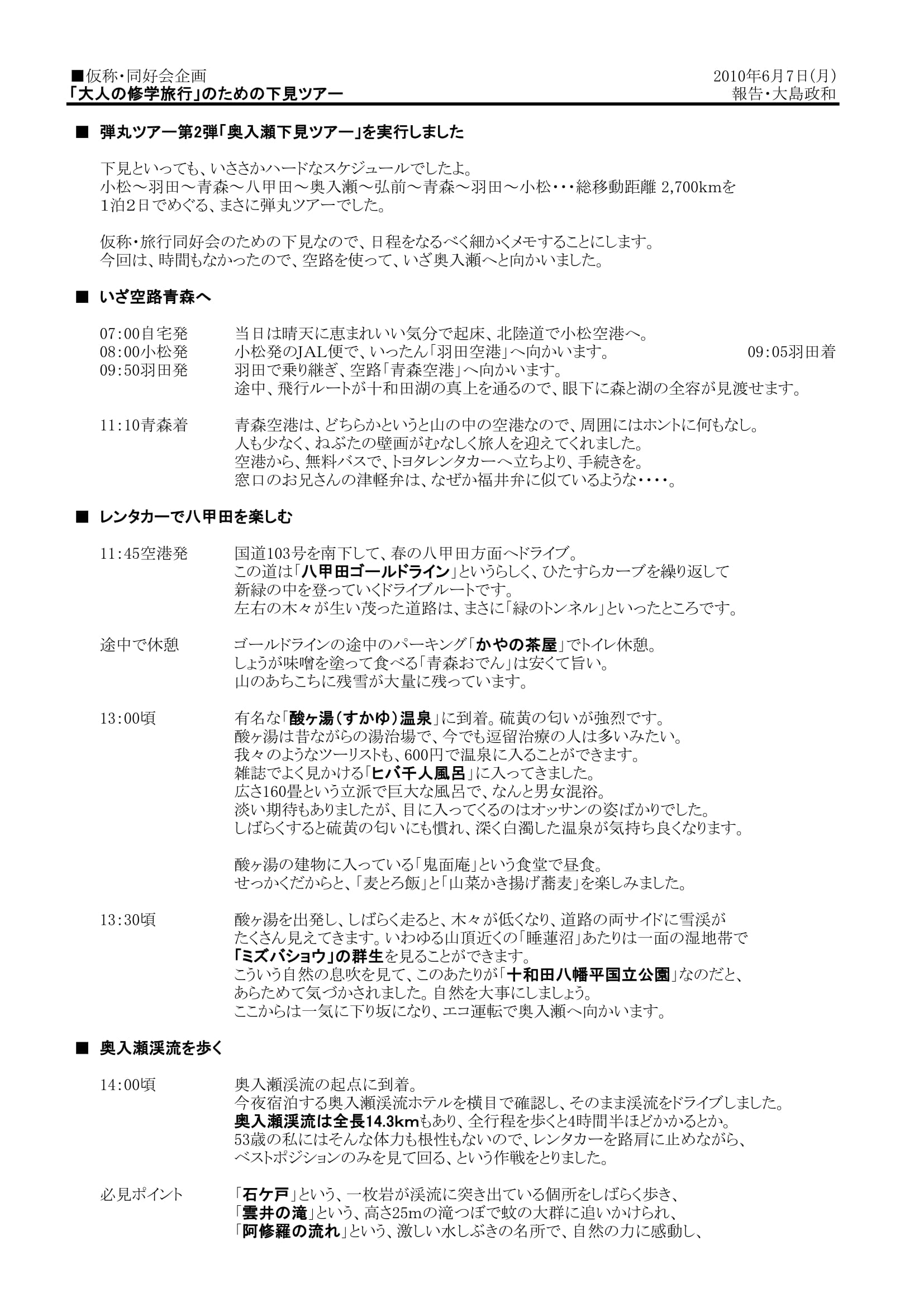 第2弾は、「奥入瀬下見ツアー」です。