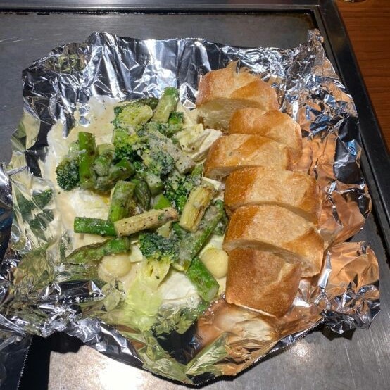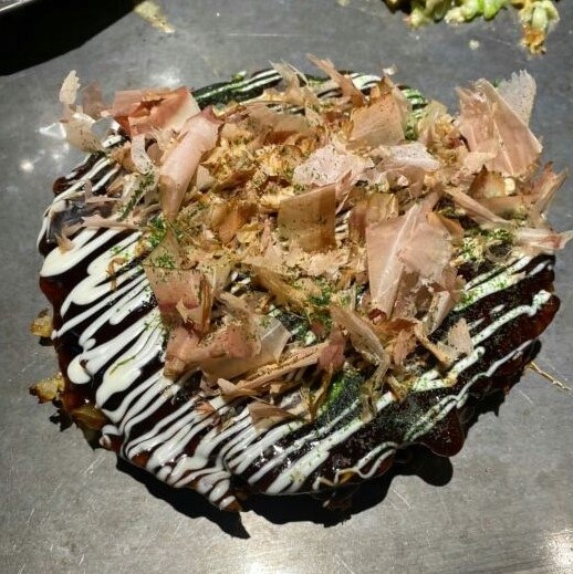 会場の「おかもと」は、せっかくの大阪だから、美味しい「粉もん」を食べてほしい、と選んでくれた鉄板焼き?お好み焼き?の店で、繁華街から離れた静かな場所にあった。だけど確かに出てくる料理は、どれも想像を超えるシロモノばかりで美味しく楽しかった。チーズを巧みに使った料理はどれも意表をついていて、中でもゴルゴンゾーラをふんだんに使った「ねぎ焼き」?は絶品で、赤ワインがガブガブすすむ(笑)。でも個人的には最後の〆の「豚玉」?にやられた。これがホンモノってことなのかな、とても感心した。