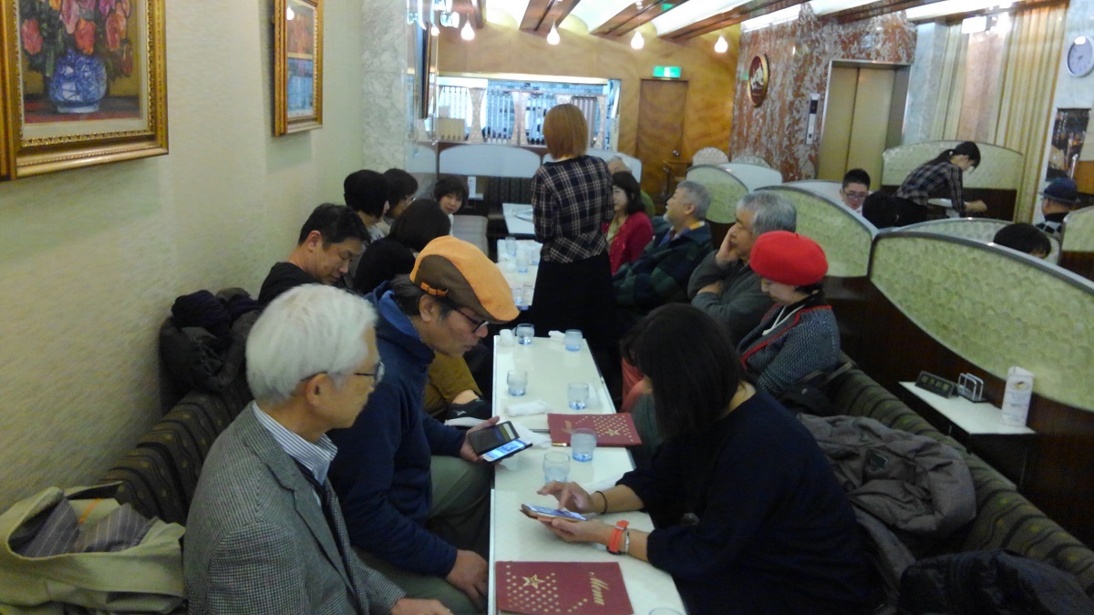 途中でレトロな喫茶店を見つけた。看板もショーケースも昭和の臭いがする。思わずみんなを誘って入ることにした。この店は15人でも大丈夫だから、少し騒いでもいいのかなぁ(笑)。結局、BARの予定が純喫茶に替わっても、みんなの3次会は当たり前のように盛り上がった。面白がって注文した「小倉ホットケーキ」は、意外にキレのいい甘みのアンコで旨かった。内装やインテリアからすると、この店は、きっと昭和から続いているのは間違いない。当時ならさぞかし豪華な店と呼ばれたことだろう。それが令和の時代になっても、こんな若い人たちがたくさん利用している。昭和に生きた者として、少しだけ嬉しい気もする。