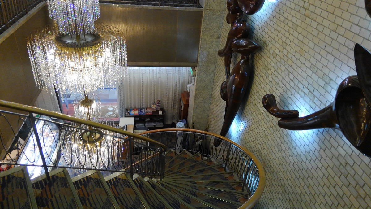 1次会は予定時間をはるかにオーバーして、お開きになった。さぁ計画通り、下界へ降りて(笑)、あの「新世界」の空気に触れよう。ホテルスタッフのおすすめで決めた集合写真の場所には、ZK(ジーケー)のロゴをあしらったオブジェが置いてあった。なるほどジーケー(ZK)の意味はベタに「絶景」からとったんだね(笑)。