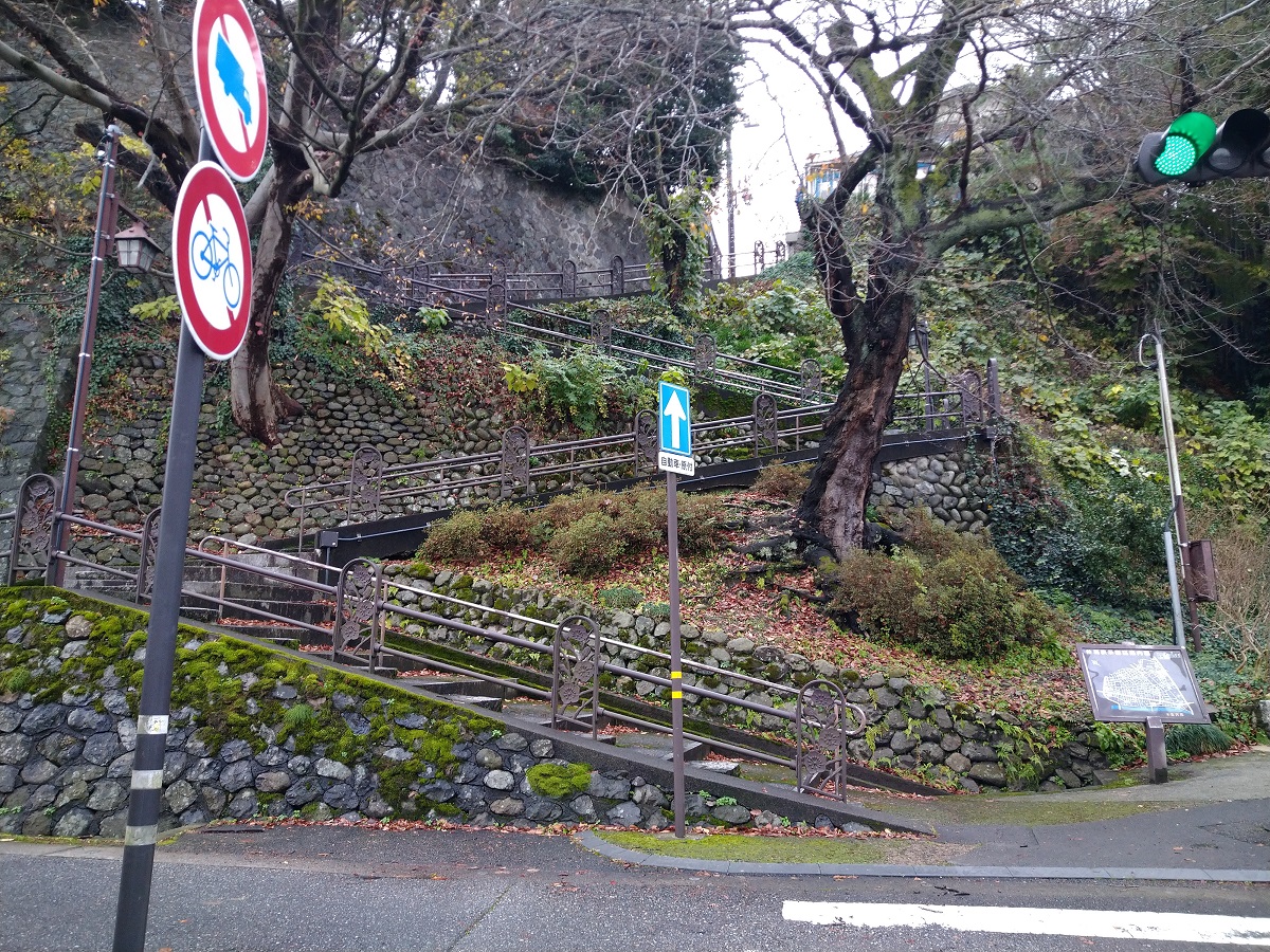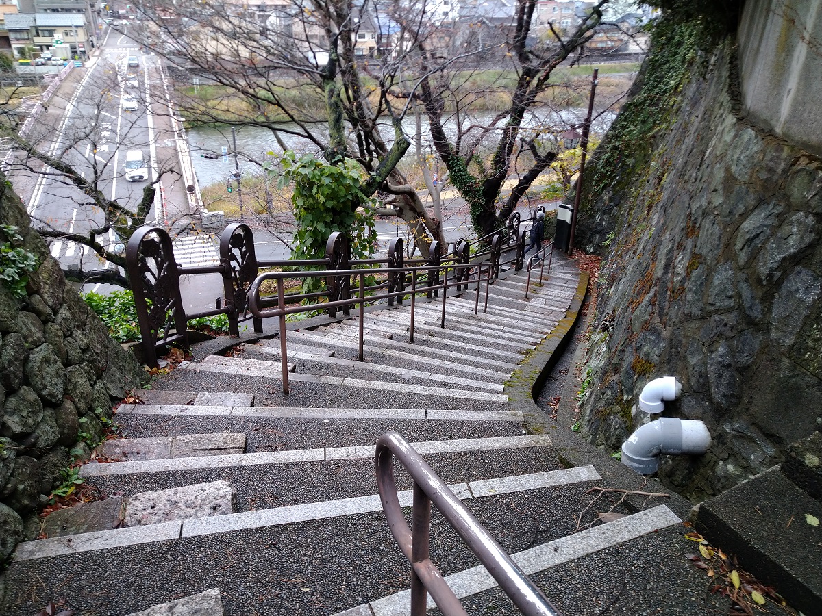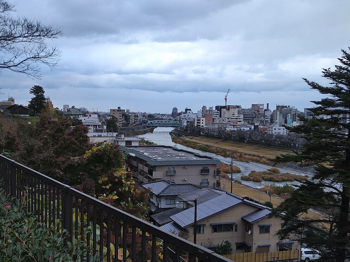企画展には、ここの設計者、谷口吉生さんの作品として、MoMA(ニューヨーク近代美術館)の資料や模型も展示されていた。圧倒的な迫力だった。世界的なコンペで勝ち抜くというのは、すごいことなのだろう。大満足の建築館を後にして、僕たちは次の鈴木大拙館まで、のんびり散歩することにした。寺町の狭い路地を歩いて、石伐坂(いしきりざか)、いわゆる通称「W坂」の階段を降りる。眼下の犀川や街並みがきれいで、何となく懐かしく思えた。そういえば、犀川大橋のアーチは、あんなにカッコいいんだ、などと見直してみたりした。