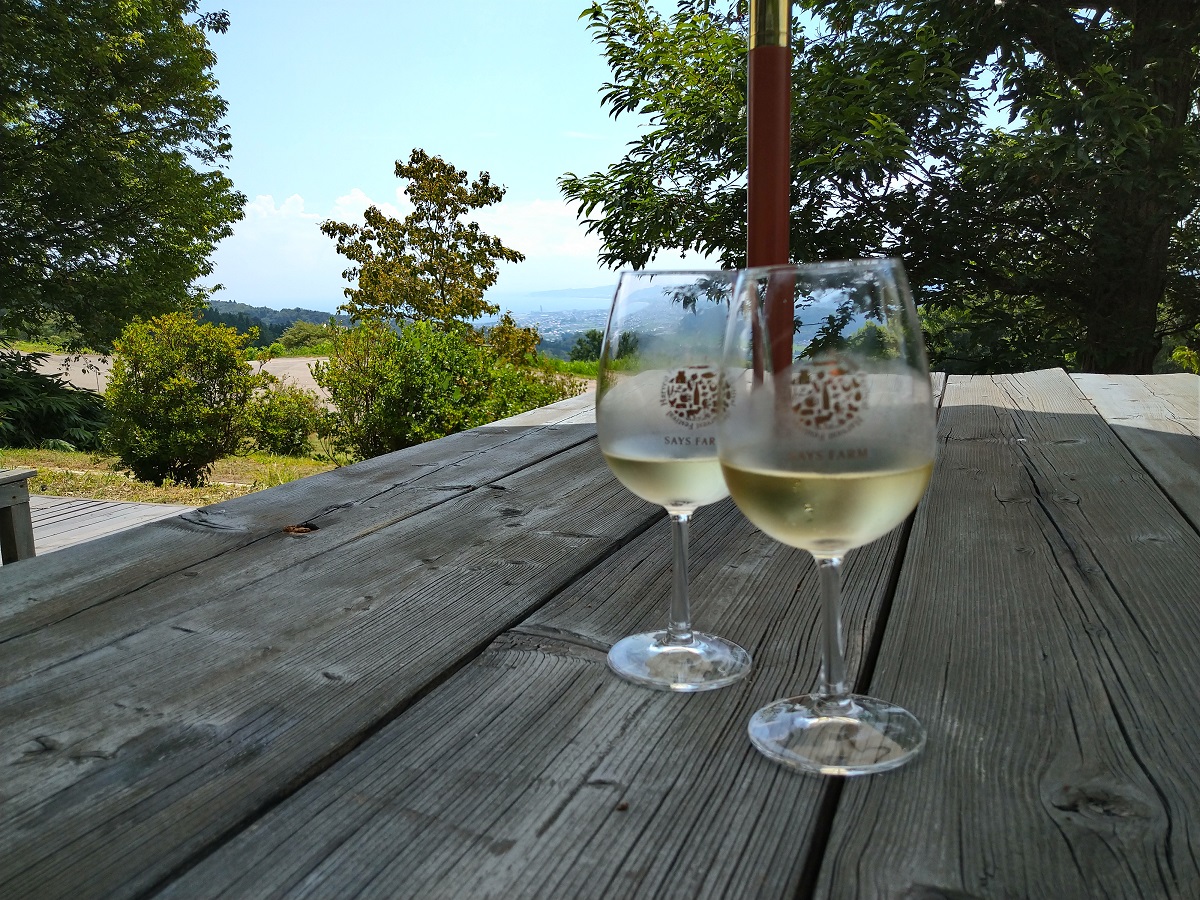 この日の最初の海は「氷見の港」を選んだ。しかも港の全景を眼下に見下ろす山の上だ。ワイン好きな3人だからと、セイズファーム(ワイナリー)を目指したのだった。たまたまリリースしたばかりの「アルバリーニョ」をゲットできてラッキーだった。スペイン生まれのこのブドウ品種は、魚介料理に合うことで有名だから、氷見のワイナリーの代名詞に育っていくのかもしれない。勇者はさかんにアルバリーニョの畑を撮影していた。もちろんブドウ棚を見ても違いが分かるわけではない。