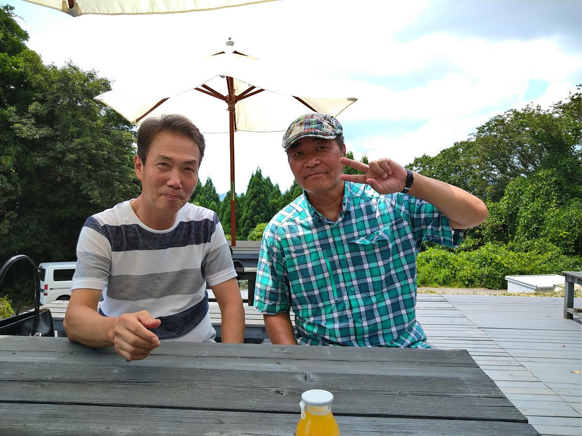 森の中のオープンデッキは気持ちよさそうだからと、そこで乾いた喉を潤すことにした。ドライバーの僕は林檎ジュースを、勇者とクレヨンは「悪いなぁ」といいながら、でも笑ってシャルドネ?あたりの白ワインを注文していた。こいつらは、今日1日、ハンドルを握る気がないらしい(笑)。