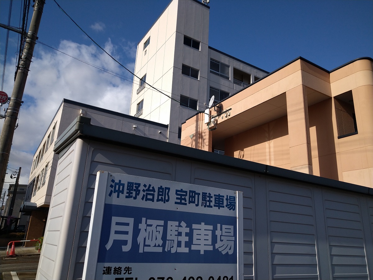 そして、富山駅前の「青春の痕跡」を探した。彼の下宿は、もはや跡形(あとかた)もなく、大きなビルが建っていた。でも横の駐車場にアパート名の痕跡を見つけることができた。当時の彼(I本くん)は路面電車で大学へ通っていたらしい。そんな電車の軌道敷を渡って、すでに無くなったパチンコ屋や大衆食堂の跡地方向へ向かう。