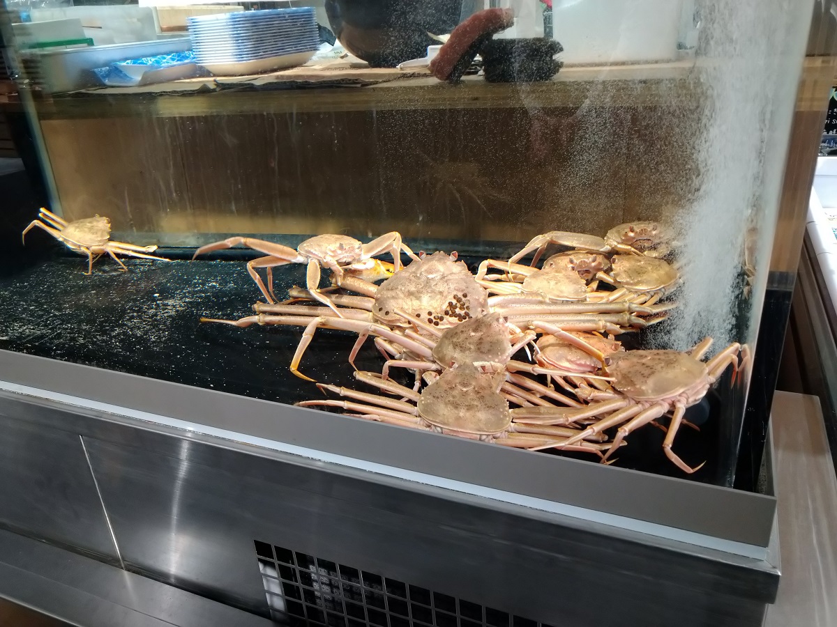 駅舎でゆっくりお土産探しだ。駅舎は新幹線開業とともに大変貌している。まぁ誰に買うのかは知らないが、ご機嫌とりには必須アイテムだよね。僕たちは参加できなかった仲間用のマス寿司も買うことにした。ここでZ団の昼の部は終了なので、駅でいったん解散し、残った4人で夜の富山グルメを楽しむことにしている。旨い地魚と地酒が自慢の居酒屋に向かった。飲む前から、もうヘロヘロだ(笑)。