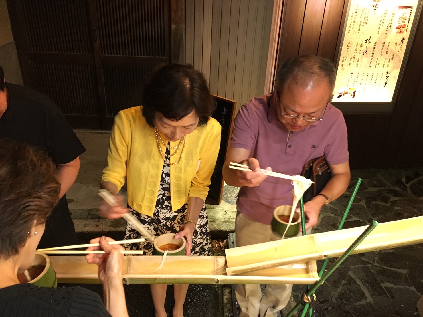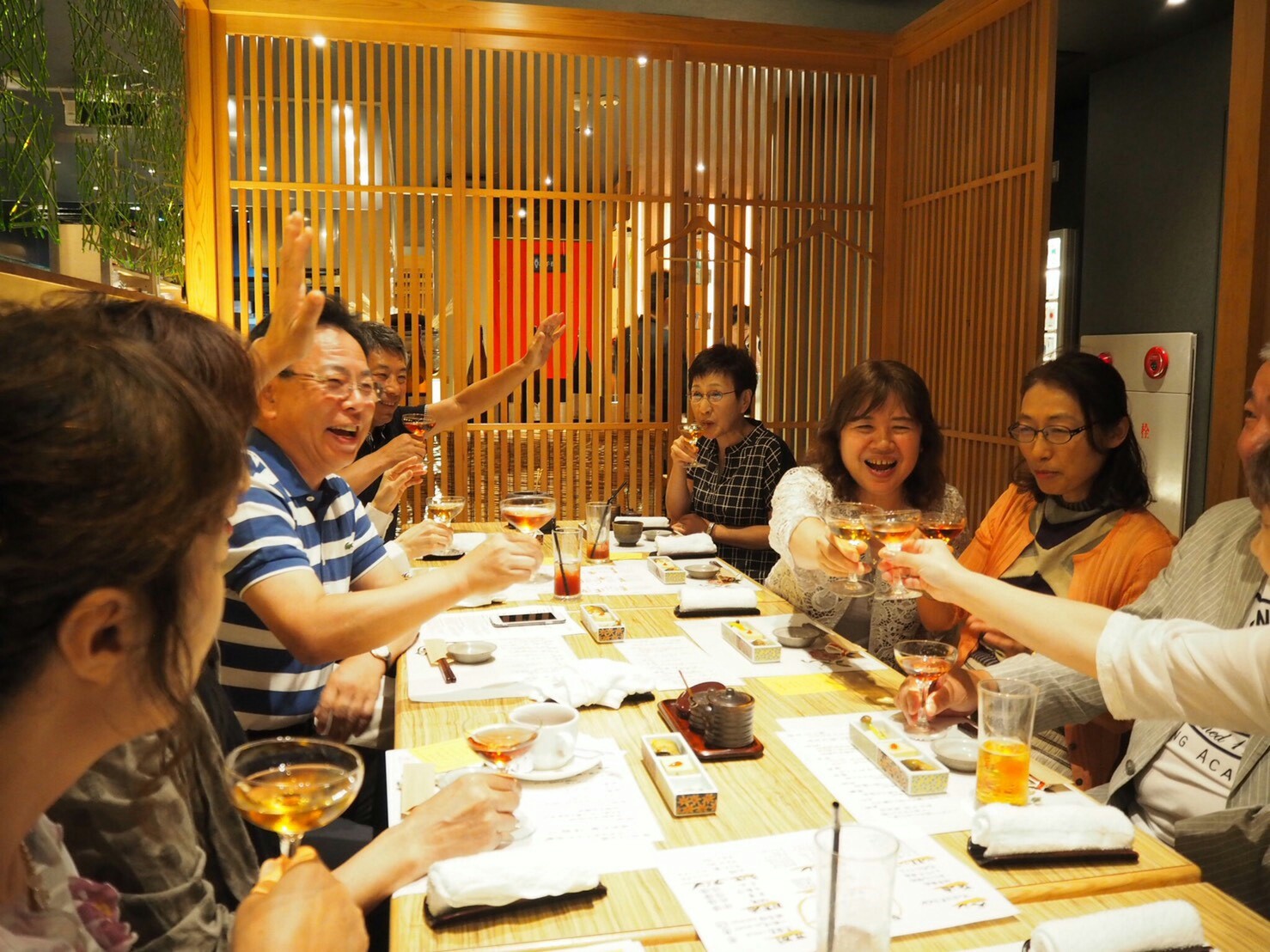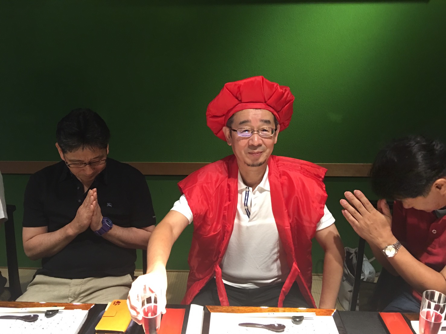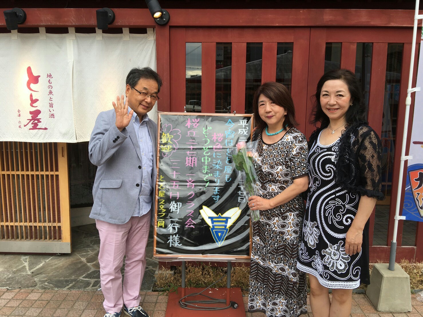 当日は、金沢駅前の居酒屋8店舗を使って、「気軽にやろう、ゆっくり話そう」というシンプルなテーマで、食事と会話を楽しみました。我々の企画に賛同してくれた料理長や店長の個別企画も手伝って、楽しい1次会を過ごしました。イワナの炭焼きパフォーマンス、童心に帰った流しそうめん、まぐろ解体ショー、一人一人への握り寿司など料理の企画はすべて料理長の発想です。店長の中には、実際に桜丘高校へ電話し趣旨を伝え、訪問の上で現在の桜丘高校の校内写真を撮影し、当日の会場に掲示するハナレ技を見せた例もありました。もっと地味にやる、と決めていたのですが、外部の方々のキモチがエスカレートしていったということなのでしょう。ヒトは熱意に反応する、ということですね。