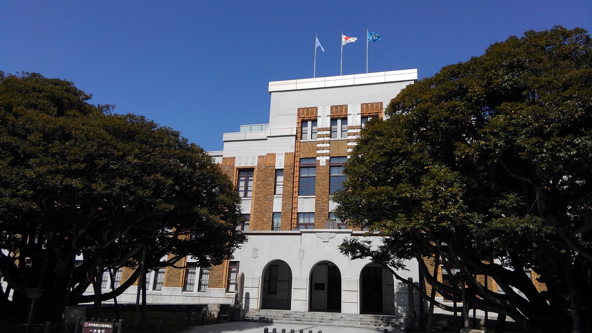 仕事に戻るクレヨンとはここでいったんお別れだ。県工前で落としてもらった勇者と僕は、大乗寺坂をゆっくり登っていった。今はきれいな坂道公園に整備されている。小立野台地から見える街並みがきれいだ。でも登るのはしんどいよね。紫錦台には旧校舎が博物館として残っていた。三尖塔校舎と呼ぶらしい。その前庭も整備されていて、玄関の左右に白梅と紅梅がきれいに咲き誇っていた。ある意味でとても羨ましかった。